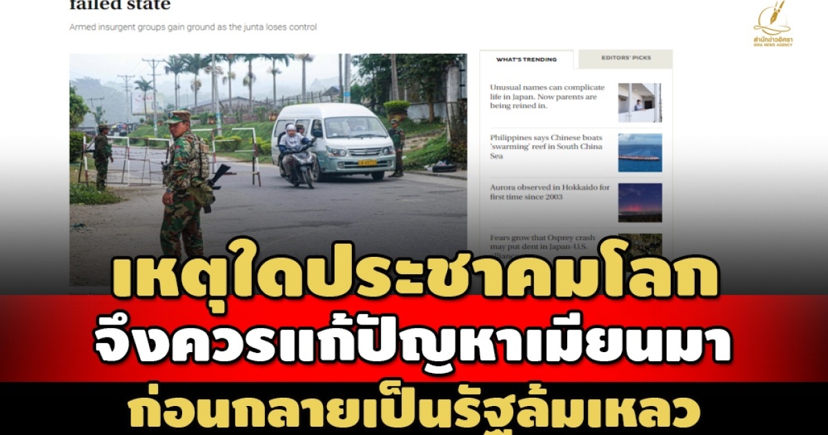 เรียบเรียงจาก: https://www.japantimes.co.jp/editorials/2023/12/01/myanmar-failed-state/ , https://www.firstpost.com/explainers/myanmar-conflict-intensifies-will-the-junta-rule-collapse-13436132.html