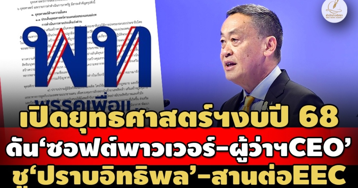 เหล่านี้เป็นสรุปรายละเอียดยุทธศาสตร์การจัดสรรงบปี 2568 ของรัฐบาลเศรษฐา ทวีสิน และจะเห็นได้ว่าในการจัดทำยุทธศาสตร์ฯปีนี้ ได้นำนโยบายของ 'พรรคเพื่อไทย' ไปขับเคลื่อนในหลายๆเรื่อง เช่น การแก้ปัญหาความเห็นต่างในรัฐธรรมนูญ ,ผู้ว่าฯซีอีโอ ,นโยบาย 1 ครอบครัว 1 ทักษะซอฟต์พาวเวอร์ ,ยกระดับ 30 บาทรักษาทุกโรค และการปราบผู้มีอิทธิพล เป็นต้น