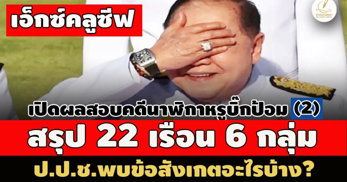 ในตอนนี้ สำนักข่าวอิศรา จะขอนำเสนอผลสรุปการตรวจสอบนาฬิกาจำนวน 22 เรือน ที่มีการจัดแบ่งกลุ่มไว้จำนวน 6 กลุ่ม แบบชัดๆ ดังนี้
