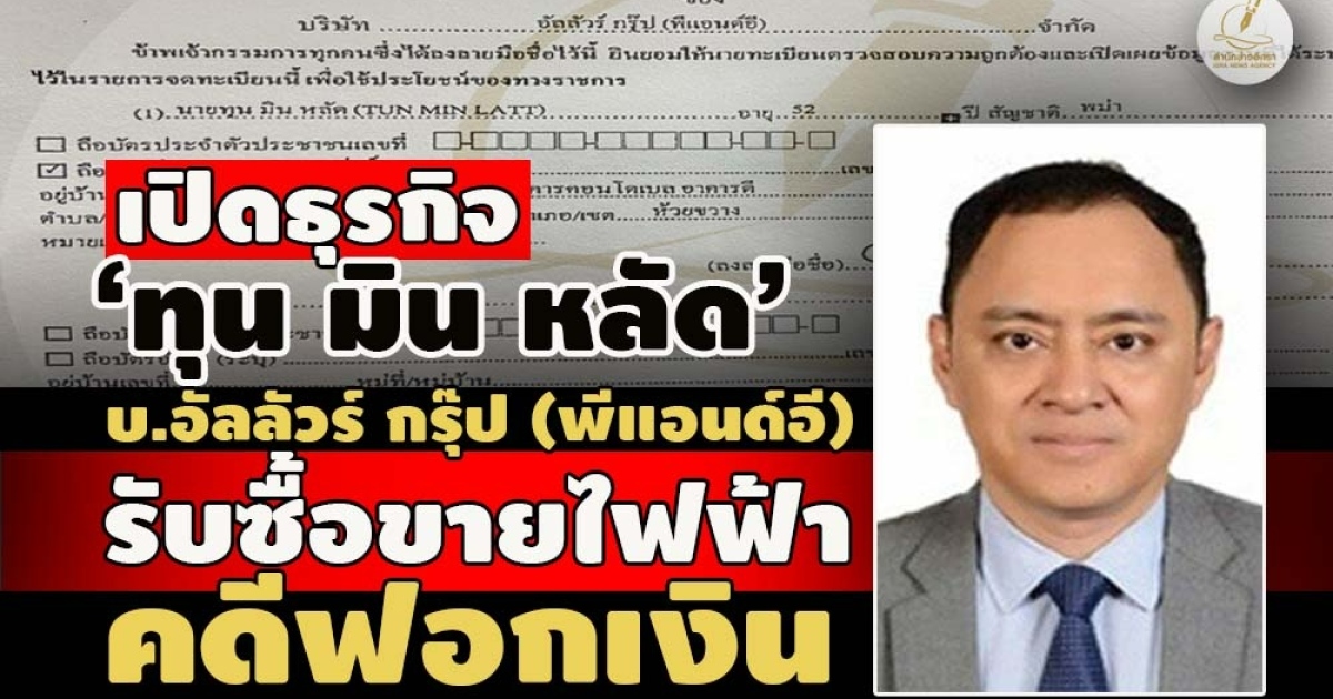 เปิดข้อมูลธุรกิจ‘ทุน มิน หลัด’ กก.ถือหุ้นใหญ่ บ.อัลลัวร์ กรุ๊ป (พีแอนด์อี) รับซื้อจำหน่ายไฟฟ้าเมืองท่าขี้เหล็ก เมียนมาร์ ทุนล่าสุด 5 ล. ส่งงบการเงินปี 2564 ไม่มีรายได้ 2 ปีติดต่อกัน ก่อนตกเป็นผู้ต้องหาคดีอาญา ฟอกเงินค้ายาเสพติด