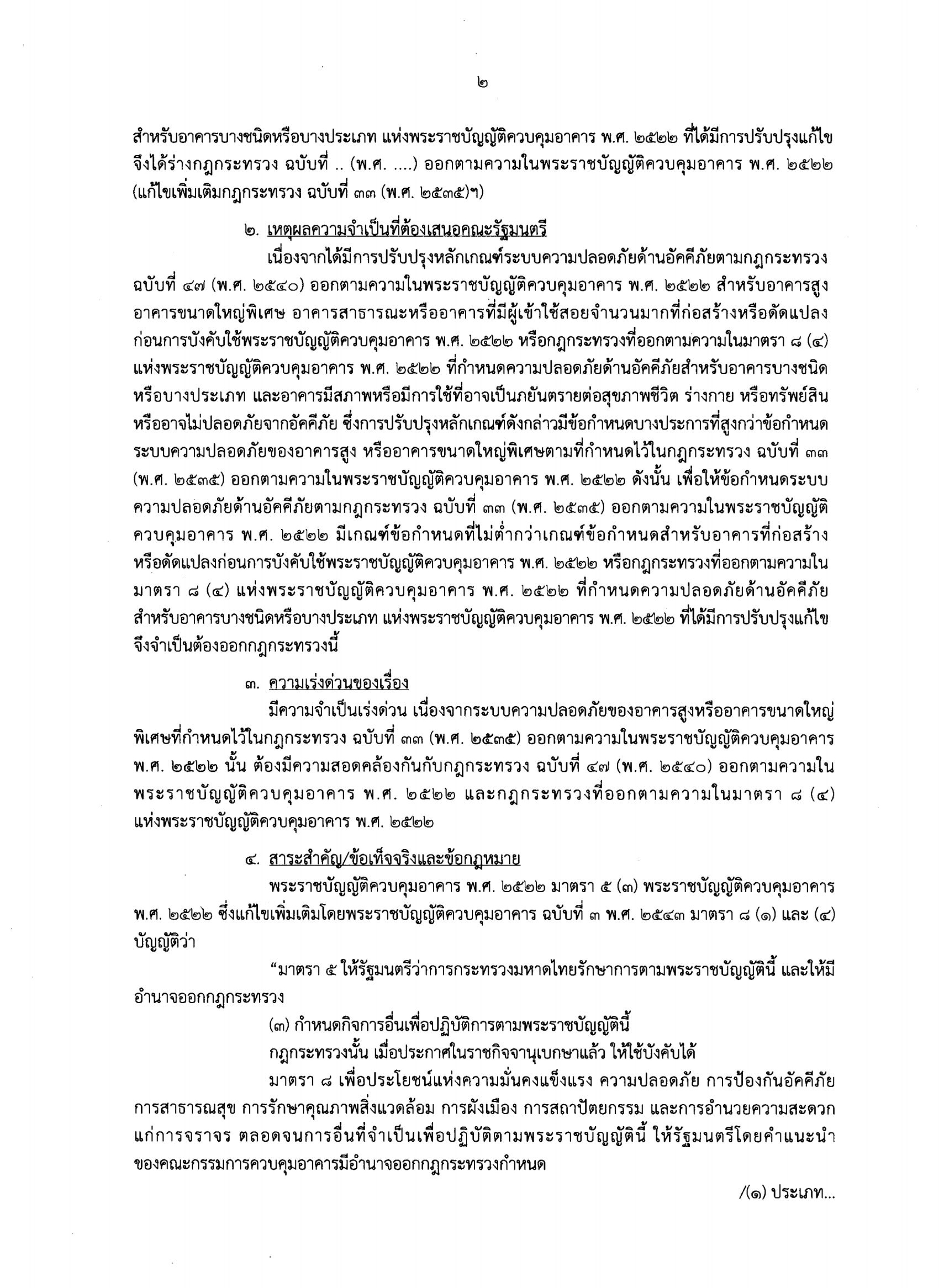 ทั้งนี้ เมื่อพิจารณาเนื้อหาสาระของ ร่างกฎกระทรวง ฉบับที่ ... (พ.ศ. ....) ออกตามความในพระราชบัญญัติควบคุมอาคาร พ.ศ.2522 (แก้ไขเพิ่มเติมกฎกระทรวง ฉบับที่ 33 (พ.ศ.2535)ฯ) พบว่า