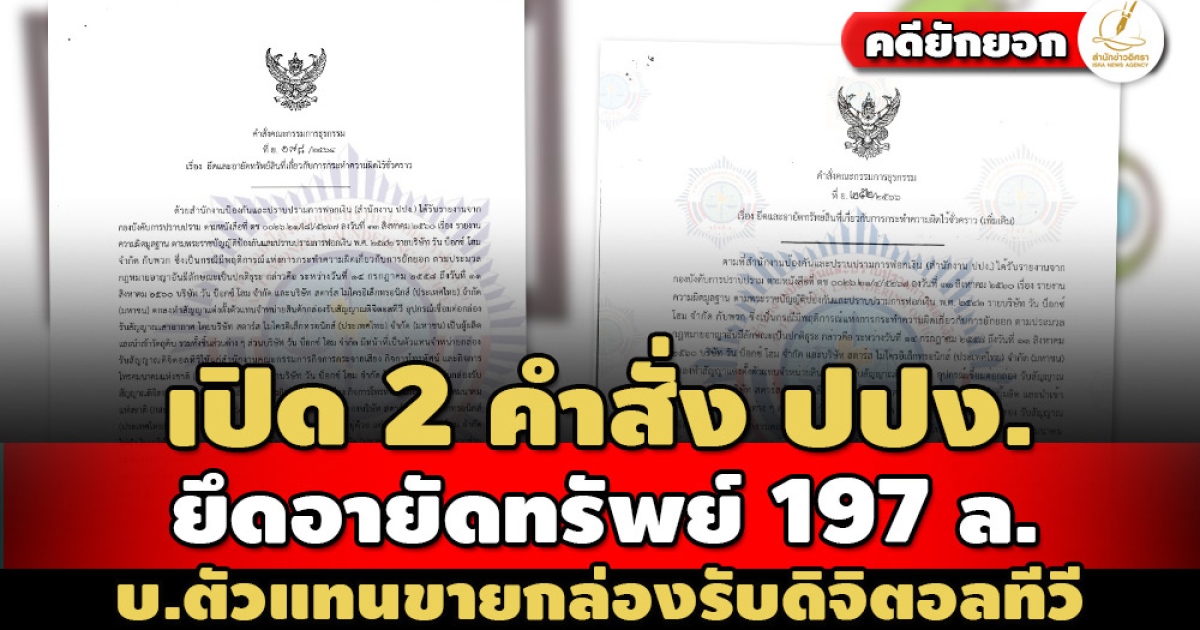 เปิดคำสั่งปปง. ยึดอายัดทรัพย์เกี่ยวข้องกระทำความผิดราย บ.วัน บ็อกซ์ โฮม กับพวก 2 ลอต 37 รายการ 197.1 ล. ถูกผู้เสียหายแจ้งความฐานยักยอกเงินประกันจาก กสทช.ไม่คืนให้ผู้ผลิต พร้อมนำกล่องรับสัญญาณดิจิตอลทีวี อุปกรณ์ ขายเอง ตร.ส่งสำนวนอัยการเห็นสั่งฟ้องศาลแขวงพระนครใต้