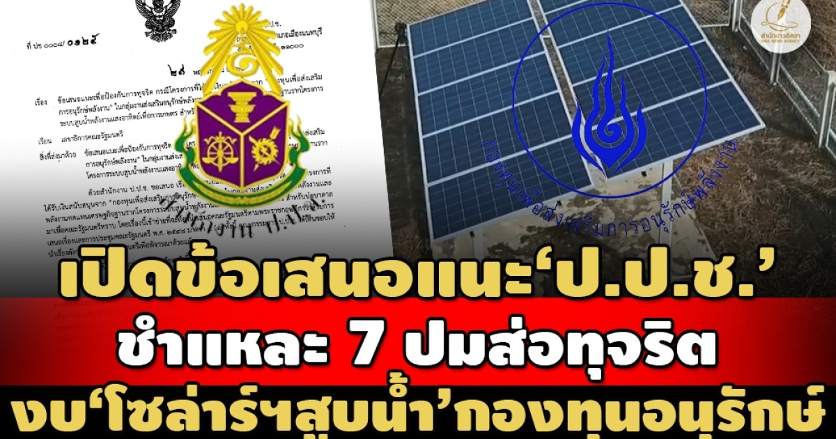 เหล่านี้เป็นข้อเสนอแนะเพื่อป้องกันการทุจริต กรณีโครงการที่ได้รับเงินสนับสนุนจาก ‘กองทุนเพื่อส่งเสริมการอนุรักษ์พลังงาน’ ในส่วนโครงการ ‘โซล่าร์เซลล์สูบน้ำ’ ที่ ป.ป.ช. เสนอให้ ครม. รับทราบ และยังต้องติดตามกันต่อไปว่า กระทรวงพลังงาน จะมีมาตรการป้องกันการทุจริตในโครงการฯนี้อย่างไร ?