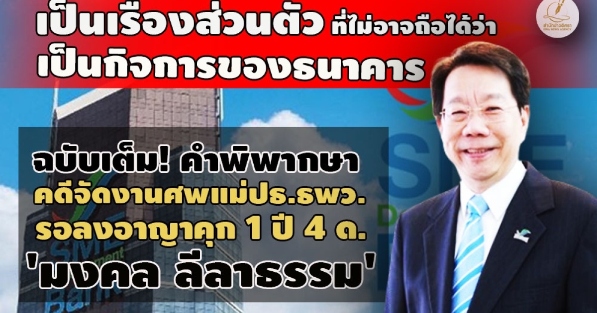 กรณีสำนักงานคณะกรรมการป้องกันและปราบปรามการทุจริตแห่งชาติ (ป.ป.ช.) เผยแพร่ความคืบหน้าผลคดีกล่าวหา นายมงคล ลีลาธรรม เมื่อครั้งดำรงตำแหน่งกรรมการผู้จัดการ (ซีอีโอ)ธนาคารพัฒนาวิสาหกิจขนาดกลางและขนาดย่อมแห่งประเทศไทย (ธพว.) กรณีการอนุมัติให้ใช้งบประมาณของธนาคารพัฒนาวิสาหกิจขนาดกลางและขนาดย่อมแห่งประเทศไทย เป็นค่าใช้จ่ายในการร่วมงานศพมารดาประธานกรรมการ ธพว. ระหว่างวันที่ 23-26 มกราคม 2560 ณ วัดแสนหลวง ต.ยางเนิ้ง อ.สารภี จ.เชียงใหม่ โดยมิชอบหรือโดยทุจริต