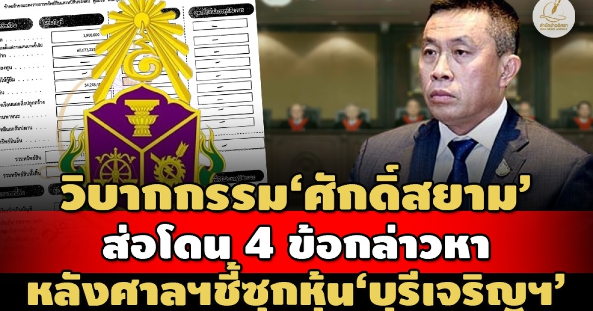 เหล่านี้เป็นข้อกล่าวหา หรือ ‘วิบากกรรม’ ที่นายศักดิ์สยาม อาจต้องเผชิญต่อไป หลังจากเมื่อวันที่ 17 ม.ค.ที่ผ่านมา ศาลรัฐธรรมนูญได้วินิจฉัยว่า นายศักดิ์สยาม ยังคงไว้ซึ่งความเป็นหุ้นส่วนหรือผู้ถือหุ้นใน หจก.บุรีเจริญคอนสตรัคชั่น โดยมีนายศุภวัฒน์ เกษมสุทธิ์ เป็น ‘นอมินี’ ทั้งนี้ 1 ใน 4 ข้อหาดังกล่าว ได้มีการยื่นเรื่องไปให้ ป.ป.ช.ไต่สวนฯแล้ว!