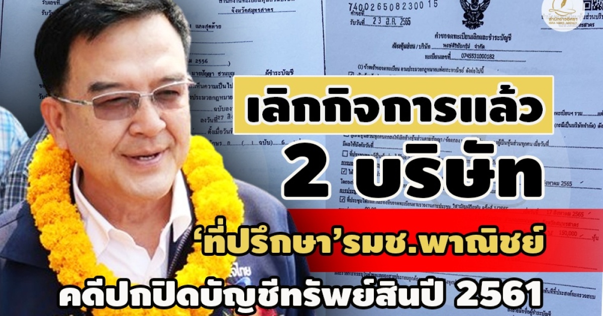 อัพเดต 2 บริษัทซื้อขายอสังหาฯ – วัสดุอุปกรณ์โรงงาน ‘ปัญญา ชวนบุญ’ อดีต ปธ.สภา อบจ.สมุทรสาคร ล่าสุดนั่งที่ปรึกษา รมช.พาณิชย์ รัฐบาลเศรษฐา ล่าสุดจดทะเบียนเลิกกิจการแล้ว หลังศาลฎีกาฯพิพากษา คดีจงใจปกปิดบัญชีทรัพย์สินปี 2561