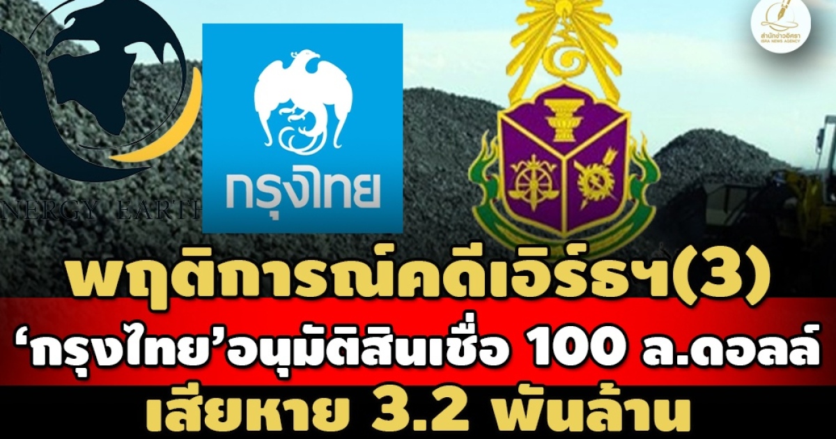 เหล่านี้เป็นสรุป 'พฤติการณ์ที่เป็นการกระทำผิด' กรณีธนาคารกรุงไทย อนุมัติวงเงินสินเชื่อระยะยาว 100 ล้านเหรียญสหรัฐ ให้ บมจ.เอ็นเนอร์ยี่ เอิร์ธ เพื่อนำไปซื้อเหมืองถ่านหินในอินโดนีเซีย และเพื่อใช้เป็นเงินทุนหมุนเวียนฯ ซึ่งทำให้ธนาคารกรุงไทยได้รับความเสียหาย เป็นภาระหนี้ จำนวน 3,288 ล้านบาท!