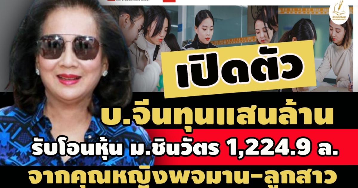 เหล่านี้ คือ ข้อมูลเบื้องต้นเกี่ยวกับ บริษัท โฮป เอ็ดดูเคชั่น กรุ๊ป (ฮ่องกง) จำกัด เจ้าของใหม่ มหาวิทยาลัยชินวัตร ที่รับโอนหุ้น 122,499,999 หุ้น มูลค่า 1,224.9 ล้านบาท มาจากมีคุณหญิงพจมาน ชินวัตร (ดามาพงศ์) และบุตรสาว
