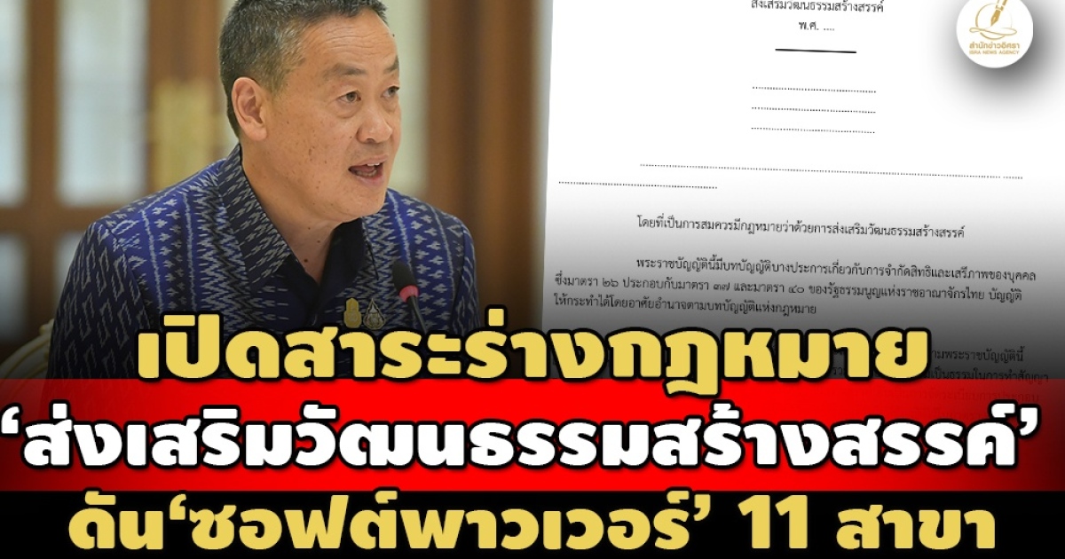 เหล่านี้เป็นสรุปสาระของร่าง พ.ร.บ.ส่งเสริมวัฒนธรรมสร้างสรรค์ พ.ศ. .... หรือ พ.ร.บ.THACCA ที่ สำนักงานส่งเสริมเศรษฐกิจสร้างสรรค์ (องค์การมหาชน) นำไปรับฟังความคิดเห็นจากประชาชน เพื่อเป็นกลไกหลักในการขับเคลื่อน ‘ยุทธศาสตร์ซอฟต์พาวเวอร์’ ของรัฐบาล เศรษฐา ทวีสิน!