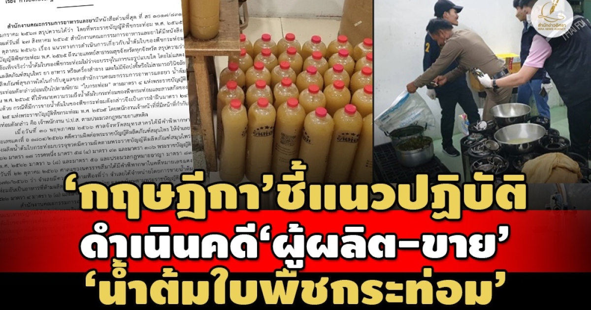 หากปรากฏข้อเท็จจริงว่า น้ำต้มใบของพืชกระท่อม ไม่ว่าจะบรรจุในภาชนะรูปแบบใด โดยไม่แสดงสรรพคุณ เป็นผลิตภัณฑ์สมุนไพร ยา อาหาร หรือเครื่องสำอาง และไม่มีข้อบ่งชี้ หรือไม่สามารถวินิจฉัยได้ว่า เป็นผลิตภัณฑ์สุขภาพใดในกำกับดูแลของสำนักงานคณะกรรมการอาหารและยา