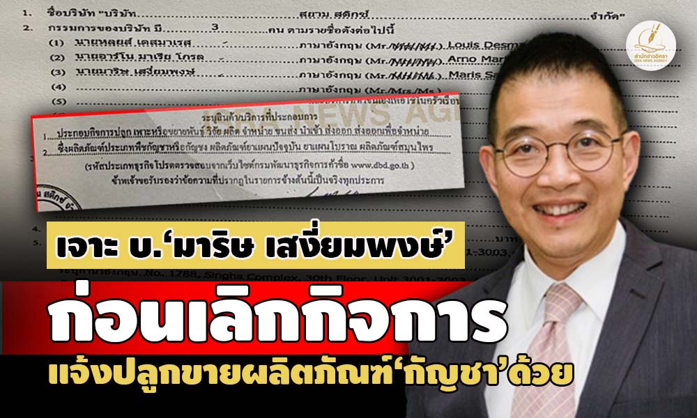- เจาะ บ.‘มาริษ เสงี่ยมพงษ์’ ก่อนเลิก! แจ้งปลูกขายผลิตภัณฑ์ ‘กัญชา’ ด้วย