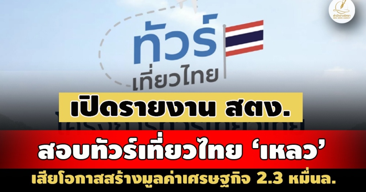 โครงการทัวร์เที่ยวไทย เพื่อช่วยเหลือเยียวยาภาคธุรกิจท่องเที่ยว ที่ได้รับผลกระทบจากการระบาดของโรคติดเชื้อไวรัสโคโรนา 2019 ถูกสำนักงานการตรวจเงินแผ่นดิน (สตง.) ตรวจสอบพบปัญหาไม่สามารถดำเนินการได้ตามเป้าหมายที่กำหนดไว้ ส่งผลกระทบต่อผลสัมฤทธิ์ในการใช้จ่ายเงินงบประมาณและการกระตุ้นและช่วยเหลือภาคการท่องเที่ยว ทั้งในส่วนของค่าเสียโอกาสในการนำเงินงบประมาณส่วนดังกล่าวไปใช้ในการดำเนินงานโครงการอื่น ๆ เพื่อเพิ่มสภาพคล่องให้แก่ผู้ประกอบการภาคธุรกิจการท่องเที่ยวและธุรกิจที่เกี่ยวเนื่อง รวมไปถึงการเสียโอกาสในการสร้างมูลค่าผลกระทบทางเศรษฐกิจอันจะกระจายรายได้ให้กับอุตสาหกรรม ด้านการท่องเที่ยวที่เกี่ยวเนื่องเป็นจำนวนกว่า 23,787.01 ล้านบาท