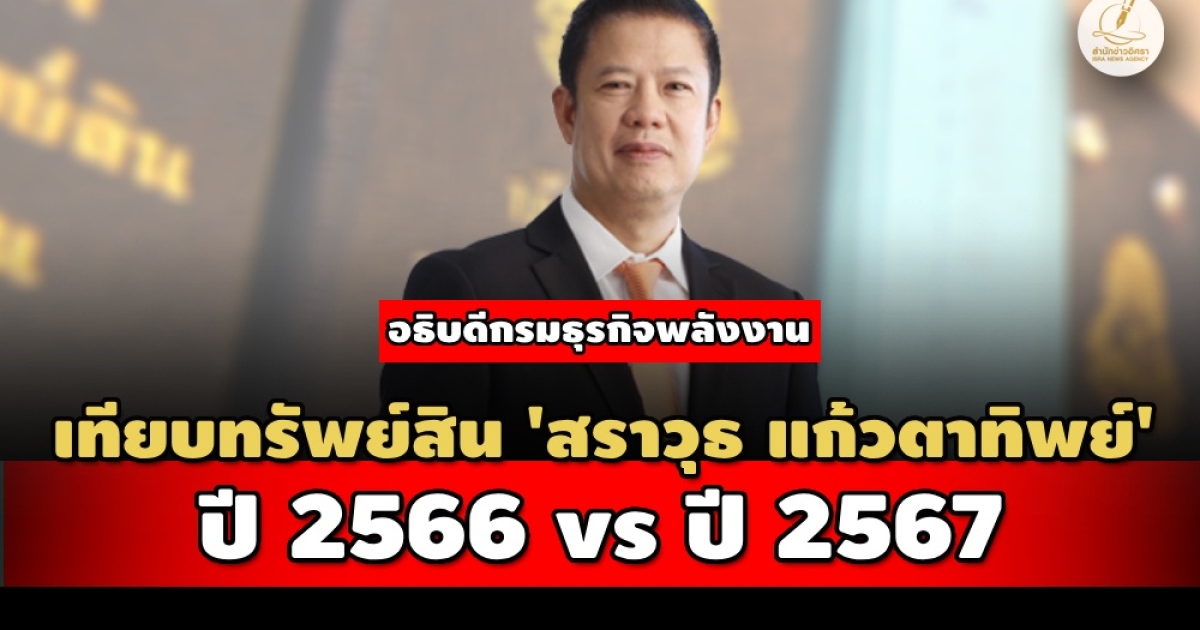 เปรียบเทียบทรัพย์สิน 'สราวุธ แก้วตาทิพย์' อธิบดีกรมธุรกิจพลังงาน ปี 2566 vs ปี 2567 เพิ่มขึ้น 18 ล. เงินฝากเพิ่มขึ้น 6 ล. รายได้ต่อปี 'มิซูโฮะ โอกิโมโตะ แก้วตาทิพย์' คู่สมรส เพิ่มขึ้น 2.7 ล.