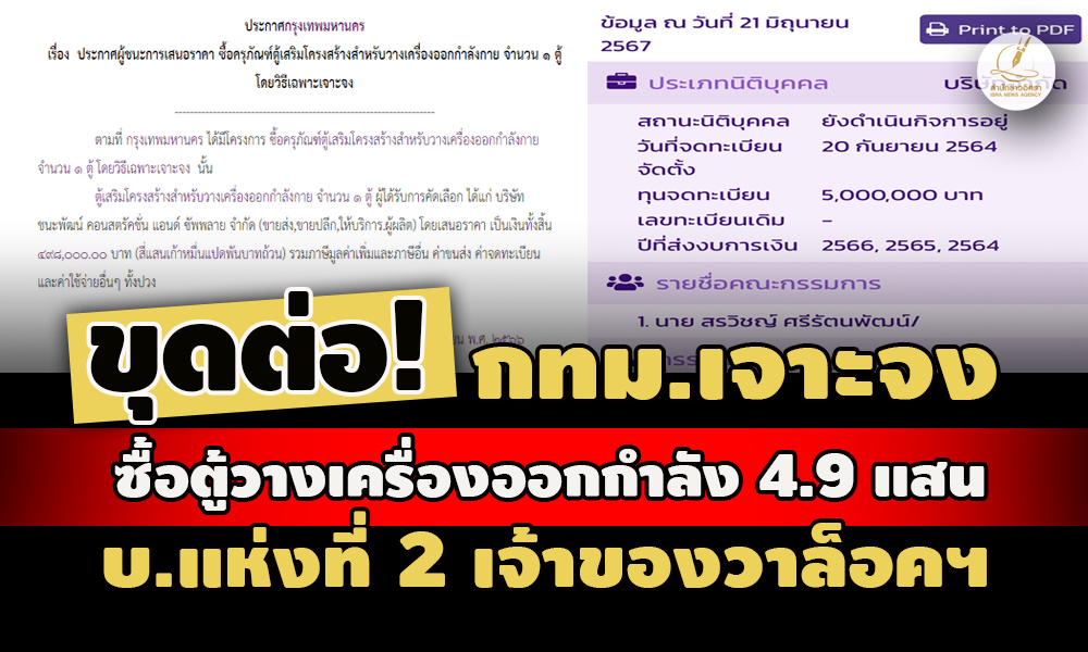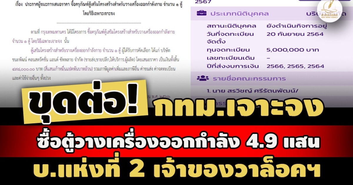 - เจาะสัญญาแรก! กทม.ซื้อเครื่องออกกำลังกาย ปี 65 สืบราคาผู้ชนะ หลังตั้งบริษัท 14 วัน (1)