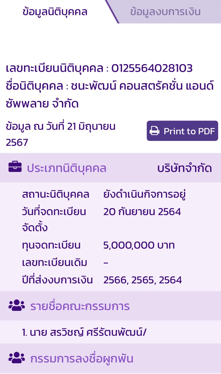 เมื่อตรวจสอบข้อมูล บริษัท ชนะพัฒน์ คอนสตรัคชั่น แอนด์ ซัพพลาย จำกัด ที่แจ้งไว้กับกรมพัฒนาธุรกิจการค้า พบว่า บริษัทฯ จดทะเบียนจัดตั้ง 20 ก.ย.2564 ทุน 5 ล้านบาท ตั้งอยู่เลขที่ 33/15 หมู่ 13 ตำบลบางแม่นาง อำเภอบางใหญ่ จังหวัดนนทบุรี แจ้งประกอบธุรกิจ การก่อสร้างอาคารที่พักอาศัย