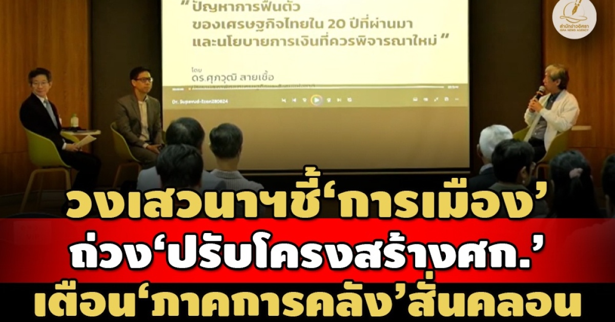 เมื่อวันที่ 28 มิ.ย. สมาคมเศรษฐศาสตร์แห่งประเทศไทย มีการจัดงานเสวนาเรื่อง ‘การเปลี่ยนแปลงโครงสร้างเศรษฐกิจไทย เพื่อเพิ่มอัตราการเติบโตอย่างยั่งยืน’ โดยในการเสวนาหัวข้อ ‘การเปลี่ยนแปลงโครงสร้างเศรษฐกิจมหภาค’ นั้น ผู้เชี่ยวชาญและนักวิชาการด้านเศรษฐกิจมหภาค ได้ให้มุมมองเกี่ยวกับการปรับโครงสร้างเศรษฐกิจที่น่าสนใจ ดังนี้