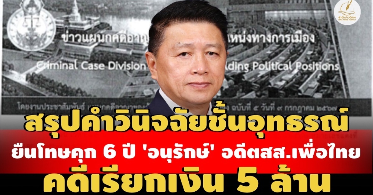กรณีสำนักข่าวอิศรา (www.isranews.org) รายงานผลการอ่านคำพิพากษาชั้นวินิจฉัยอุทธรณ์ โดยศาลฎีกาแผนกคดีอาญาของผู้ดำรงตำแหน่งทางการเมือง คดีอม.อธ.7/2566 ระหว่างอัยการสูงสุด โจทก์ นายอนุรักษ์ ตั้งปณิธานนท์ อดีตสส.มุกดาหาร พรรคเพื่อไทย จำเลย กรณีเรียกรับเงินจำนวน 5 ล้านบาท จากอธิบดีกรมทรัพยากรน้ำบาดาลแลกกับการผ่านงบประมาณ