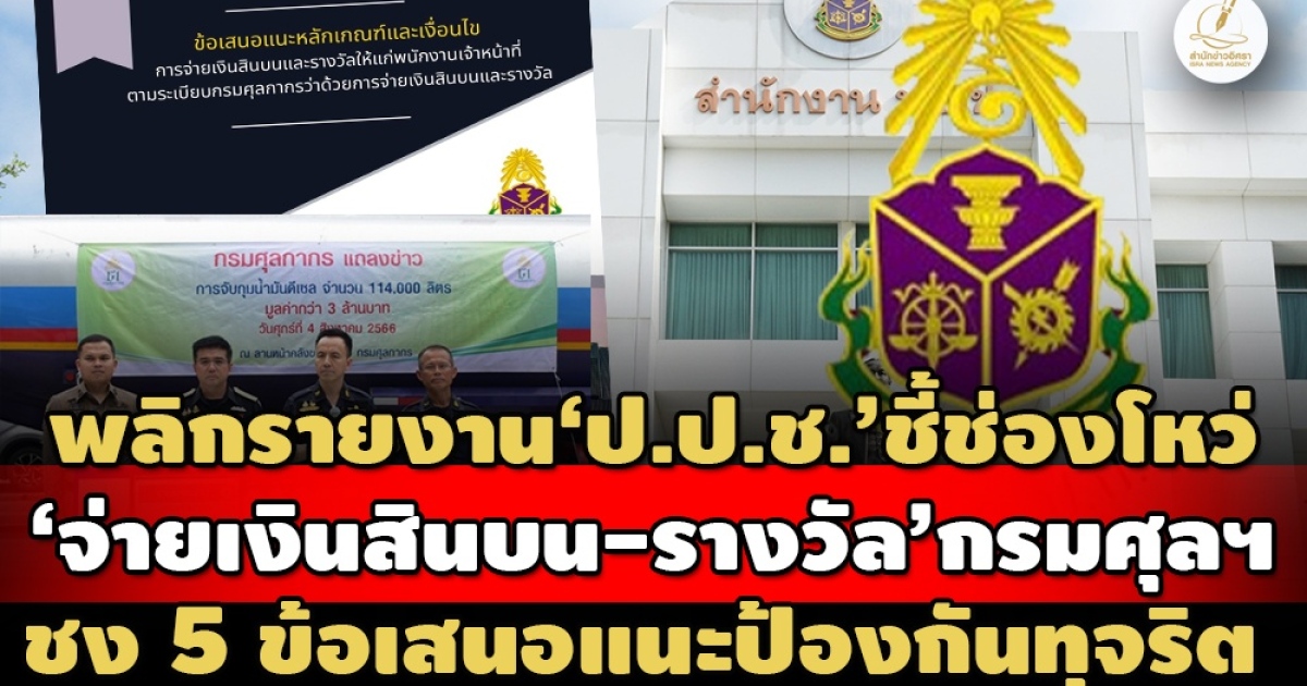 โดยในเรื่องนี้ คณะกรรมการ ป.ป.ช. เมื่อปี พ.ศ.2555 ได้เคยมีการเสนอข้อเสนอแนะการป้องกันการทุจริตเกี่ยวกับการจ่ายเงินสินบนและรางวัลของกรมศุลกากร กระทรวงการคลัง ต่อ ครม.แล้ว โดยเสนอให้พิจารณาปรับปรุงแก้ไขระบบการจ่ายเงินสินบนและรางวัล และระบบงานของกรมศุลกากรในส่วนที่เกี่ยวข้องกับการผ่านพิธีศุลกากร