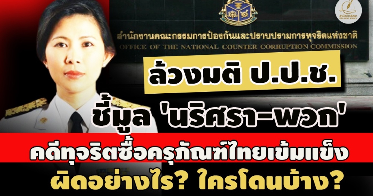 - โดนเป็นร้อยคน! เลขาฯ ป.ป.ช.คอนเฟิร์มมติชี้มูล 'นริศรา-พวก' คดีครุภัณฑ์ไทยเข้มแข็ง