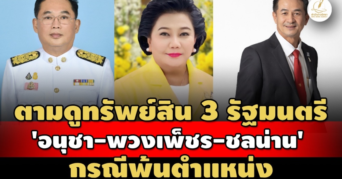ป.ป.ช.เปิดทรัพย์สิน 3 รัฐมนตรี กรณีพ้นตำแหน่ง 'ชลน่าน ศรีแก้ว' 559 ล.-'พวงเพ็ชร ชุนละเอียด' 877 ล.-'อนุชา นาคาศัย' น้อยสุด 28 ล.
