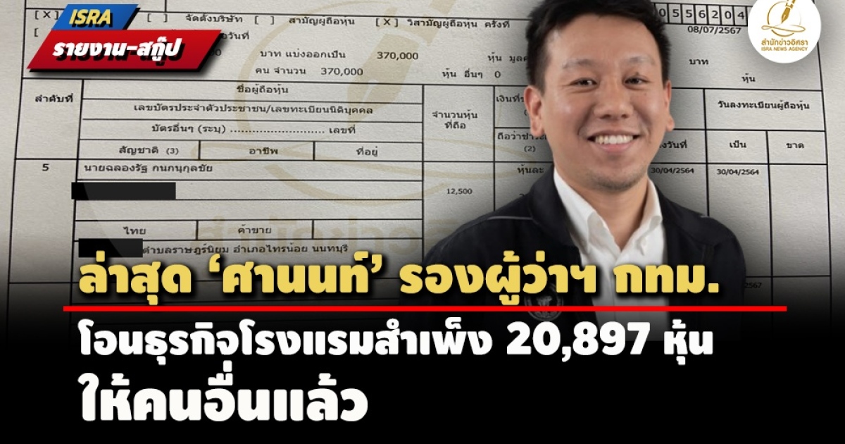 - ข้อมูลใหม่! สาวรับโอนหุ้นธุรกิจให้คำปรึกษา ที่แท้‘กก.-หุ้นส่วน’บ.เก่า‘ศานนท์’รองผู้ว่าฯ (6)