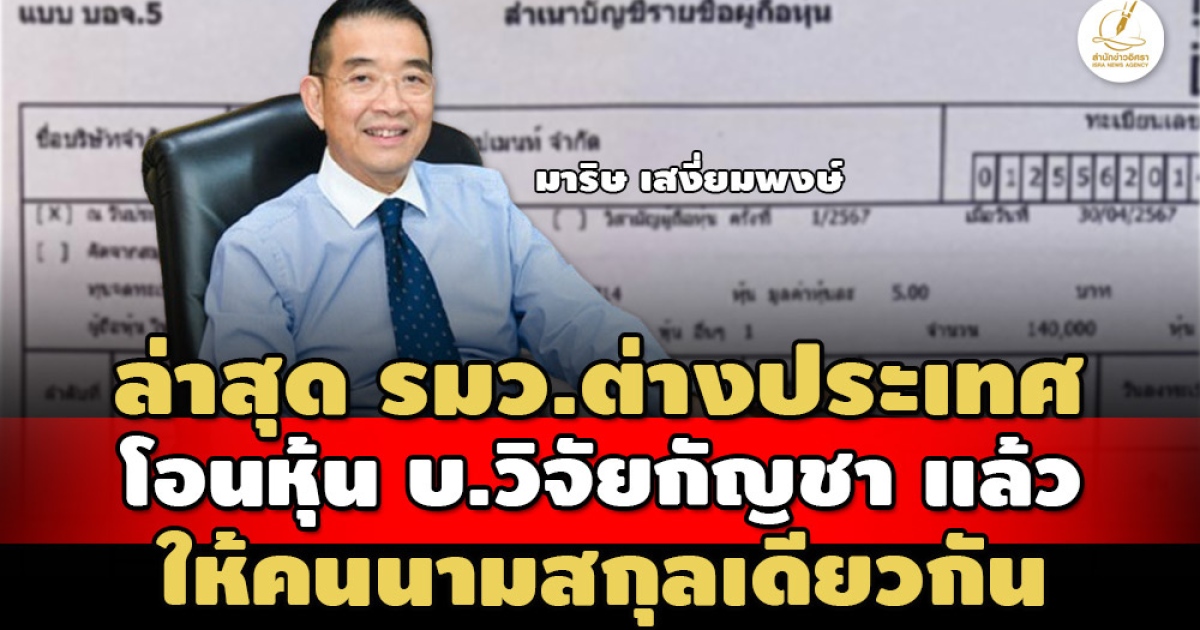 ล่าสุดจากการตรวจสอบข้อมูลเพิ่มเติมพบว่า นายมาริษได้โอนหุ้นไปให้บุคคลนามสกุลเดียวกันแล้ว กล่าวคือ