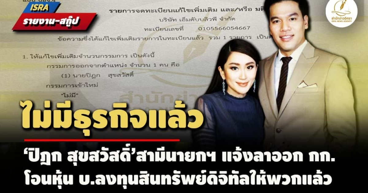 ล่าสุด นายปิฎกสามีนายกฯ แพรทองธาร ลาออกจากกรรมการและโอนหุ้นในธุรกิจดังกล่าวแล้ว