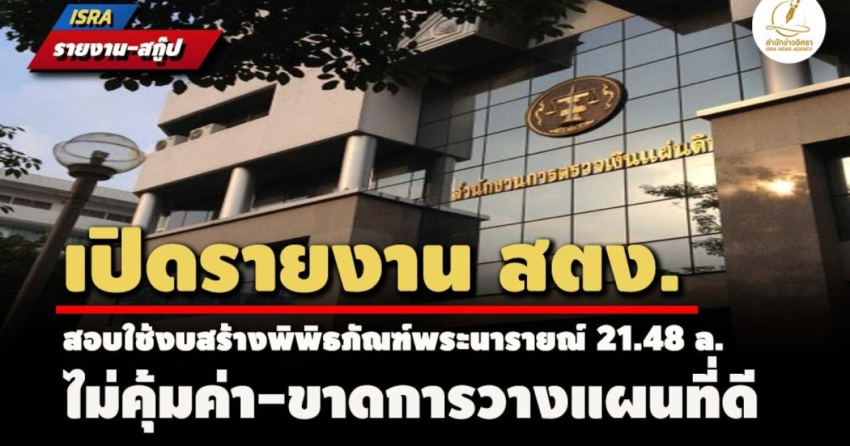 สำนักข่าวอิศรา (www.isranews.org) รายงานว่า เมื่อเร็ว ๆ นี้ สตง. ได้เผยแพร่รายงานผลการตรวจสอบเรื่องนี้ ระบุว่า พิพิธภัณฑ์พระนารายณ์พร้อมสิ่งก่อสร้างประกอบก่อสร้างในที่ดินของวัด จำนวน 4 ไร่ ได้ใช้เงินงบประมาณในการดำเนินงานตามงบประมาณรายจ่ายประจำปีงบประมาณ พ.ศ. 2561 ของจังหวัดแห่งหนึ่ง โดยมีที่ทำการปกครองอำเภอแห่งหนึ่งเป็นผู้จัดทำรายละเอียดขอเสนอโครงการและดำเนินการจัดจ้างจำนวน 2 สัญญา คือโครงการจ้างก่อสร้างพัฒนาแหล่งท่องเที่ยว มูลค่าตามสัญญา 8.00 ล้านบาท และโครงการจ้างก่อสร้างเขื่อนป้องกันตลิ่งริมคลองเพื่อการท่องเที่ยวกิจกรรมก่อสร้างอาคารจำหน่ายผลิตภัณฑ์ชุมชนพร้อมสิ่งก่อสร้างประกอบ มูลค่าตามสัญญา 13.48 ล้านบาท รวมจำนวนเงิน 21.48 ล้านบาท การดำเนินโครงการเป็นไปตามยุทธศาสตร์การพัฒนาจังหวัด ประเด็นยุทธศาสตร์ที่ 1 เรื่อง ส่งเสริมและพัฒนาการท่องเที่ยวเชิงนิเวศ สอดคล้องกับความต้องการพัฒนาแหล่งท่องเที่ยวพิพิธภัณฑ์พระนารายณ์ให้เป็นแหล่งท่องเที่ยวที่สำคัญของอำเภอ เนื่องจากมีจุดเด่นที่เหมาะสมในการพัฒนาให้เป็นแหล่งท่องเที่ยวทางประวัติศาสตร์ที่สำคัญ อำเภอและส่วนราชการท้องถิ่นได้เล็งเห็นถึงความสำคัญที่จะส่งเสริมให้มีพิพิธภัณฑ์พระนารายณ์พร้อมสิ่งก่อสร้างประกอบเป็นแหล่งท่องเที่ยวเพื่อกระตุ้นเศรษฐกิจและสร้างรายได้ให้กับประชาชนให้เพิ่มมากขึ้น