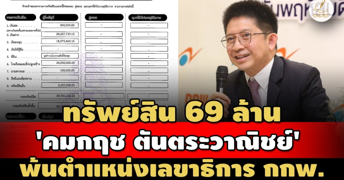 สำนักข่าวอิศรา (www.isranews.org) รายงานว่า เมื่อเร็ว ๆ สำนักงานคณะกรรมการการป้องกันและปราบการทุจริตแห่งชาติ (ป.ป.ช.) เปิดเผยบัญชีแสดงรายการทรัพย์สินและหนี้สินของผู้ดำรงตำแหน่งระดับสูง ราย นายคมกฤช ตันตระวาณิชย์ เลขาธิการสำนักงานคณะกรรมการกำกับกิจการพลังงาน (กกพ.) กรณีพ้นจากตำแหน่ง เมื่อวันที่ 1 มิ.ย. 2567