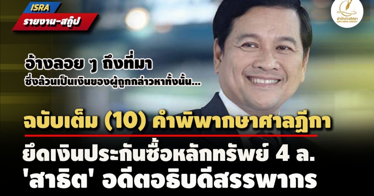 - ฉบับเต็ม (4) คำพิพากษาศาลฏีกายึดเงินฝาก-หุ้น 2 บ.รวม 5.7 ล. 'สาธิต'อดีตอธิบดีสรรพากร