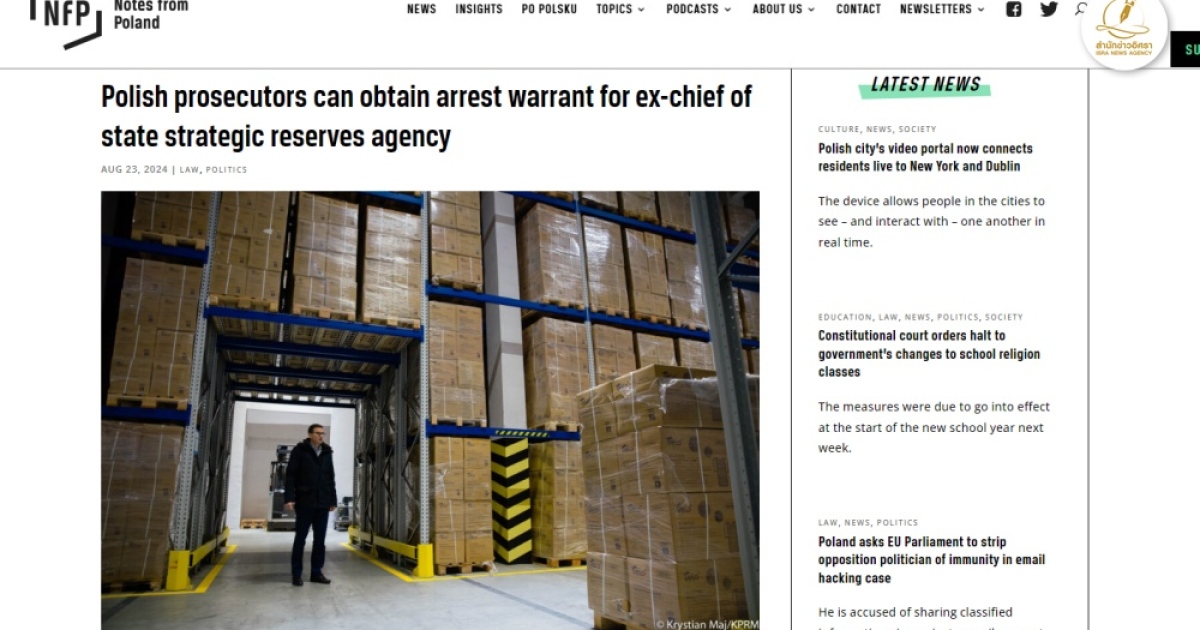 เมื่อวันที่ 23 ส.ค.ที่ผ่านมา ศาลโปแลนด์ได้ออกคำสั่งให้ควบคุมตัวหรือให้ออกหมายจับอดีตหัวหน้าหน่วยงานด้านการสํารองทรัพยากรทางยุทธศาสตร์ของรัฐบาล (RARS) ก่อนจะเริ่มการพิจารณาคดีชั่วคราว ด้วยข้อหาว่าอดีตหัวหน้าหน่วย RARS ใช้อำนาจเกินขอบเขตเพื่อหาผลประโยชน์ทางการเงิน