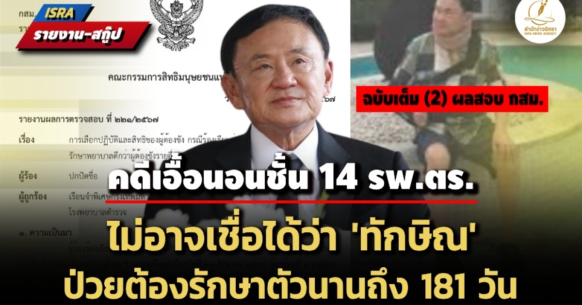 - ฉบับเต็ม (1) ผลสอบ กสม.คดีเอื้อนอนชั้น 14 รพ.ตร. 'ทักษิณ' ไม่ยินยอมเปิดเผยข้อมูลการรักษา