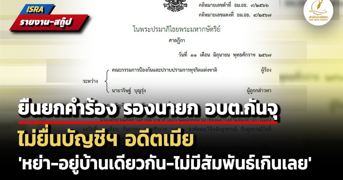 ไม่ชัดแจ้ง! ศาลฎีกาฯยกคำร้องคดีรองนายก อบต.กันจุ เพชรบูรณ์ ไม่ยื่นบัญชีฯอดีตเมีย