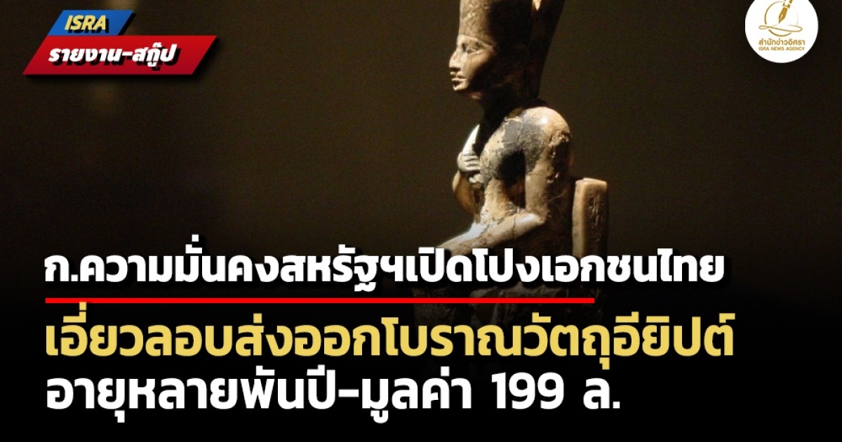 สืบเนื่องจากที่สำนักข่าวอิศรา (www.isranews.org) ได้นำเสนอข่าวกรณีร้านค้าในประเทศไทย ได้มีส่วนเกี่ยวข้องกับการขนโบราณวัตถุจากอียิปต์ อายุหลายพันปี ลักลอบนำเข้าสู่สหรัฐอเมริกาในช่วงปี 2563-2564