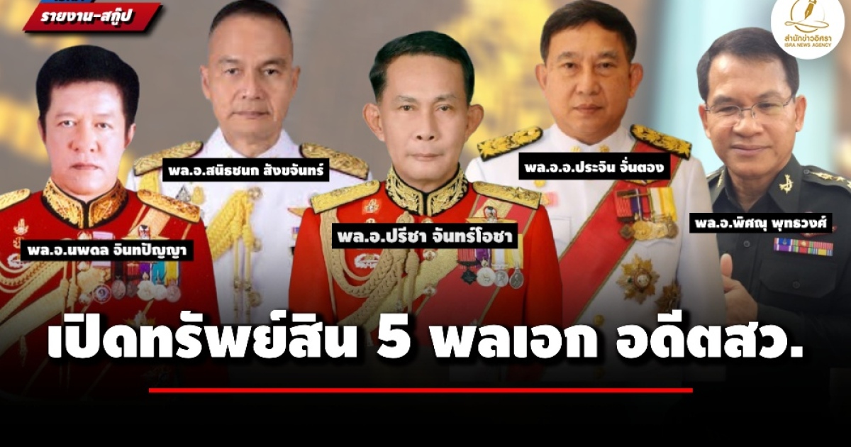 ป.ป.ช. เปิดทรัพย์สิน 5 อดีตสว. ตำแหน่งพลเอก 'สนิธชนก สังขจันทร์' ปลัดกลาโหมมากสุด 522 ล.-'ปรีชา จันทร์โอชา' น้อง 'บิ๊กตู่' 150 ล.-'ประจิน จั่นตอง' อดีตรองหัวหน้าคสช. 27 ล.-'นพดล อินทปัญญา' เพื่อนสนิท 'บิ๊กป้อม' 23.8 ล.-'พิศณุ พุทธวงศ์' ทหารคนสนิท 'เปรม ติณสูลานนท์' 23.6 ล.