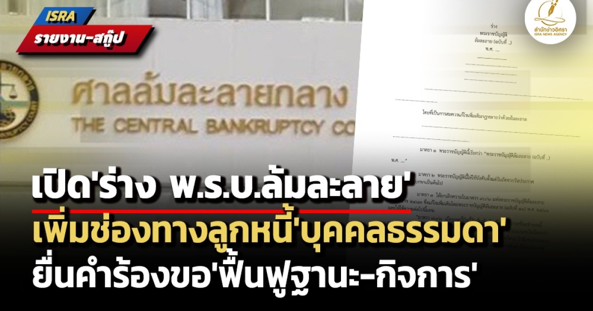 สำนักข่าวอิศรา (www.isranews.org) จึงขอนำเสนอสาระสำคัญของ ร่าง พ.ร.บ.ล้มละลาย (ฉบับที่ ..) พ.ศ. .... และความเห็นของหน่วยงานที่เกี่ยวข้องเพื่อประกอบการพิจารณาของ ครม. โดยมีรายละเอียดที่น่าสนใจ ดังนี้