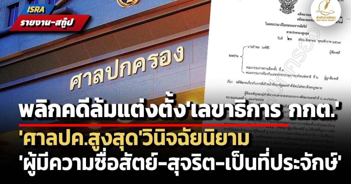 สำนักข่าวอิศรา (www.isranews.org) รายงานว่า เมื่อเร็วๆนี้ ศาลปกครองสูงสุดได้มีคำพิพากษาในคดีดังกล่าว (คดีหมายเลขดำที่ อบ.160/2562 คดีหมายเลขแดงที่ อบ.184/2567) โดยมีรายละเอียดที่น่าสนใจ สรุปได้ดังนี้