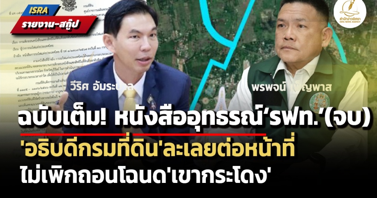 ฉบับเต็ม! หนังสืออุทธรณ์‘รฟท’(2) ‘อธิบดีกรมที่ดิน’ใช้ดุลพินิจมิชอบ ไม่ถอนโฉนด‘เขากระโดง’