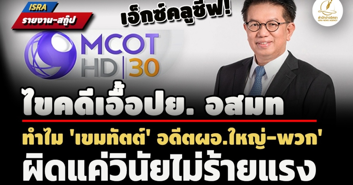 สำนักข่าวอิศรา (www.isranews.org) รายงานไปแล้วว่า เมื่อวันที่ 20 พ.ย.2567 ที่ประชุมคณะกรรมการป้องกันและปราบปรามการทุจริตแห่งชาติ (ป.ป.ช.) มีการพิจารณาสำนวนไต่สวนคดีกล่าวหา นายเขมทัตต์ พลเดช อดีตกรรมการผู้อำนวยการใหญ่ บริษัท อสมท จำกัด (มหาชน) และพวกอีก 5 ราย คือ นายธิติพร จุติมานนท์ อดีตรักษาการผู้อำนวยการฝ่าย 9 MCOT HD สังกัดสำนักโทรทัศน์ สายงานการผลิตเนื้อหาและรายการ , นางสาวศิริกุล เลากัยกุล อดีตกรรมการบริษัท อสมท จำกัด (มหาชน) และกรรมการบริษัท บีอิ้งซัสเทน จำกัด, นางมัทนา วัทนฤทธิ์ กรรมการบริษัทและผู้มีอำนาจลงลายมือชื่อและประทับตราสำคัญผูกพันบริษัท บีอิ้งซัสเทน จำกัด, บริษัท บีอิ้งซัสเทน จำกัด และนายเสฏฐวุฒิ จับทร์วาววาม อดีตรองกรรมการผู้อำนวยการใหญ่สายงานการผลิตเนื้อหาและรายการ