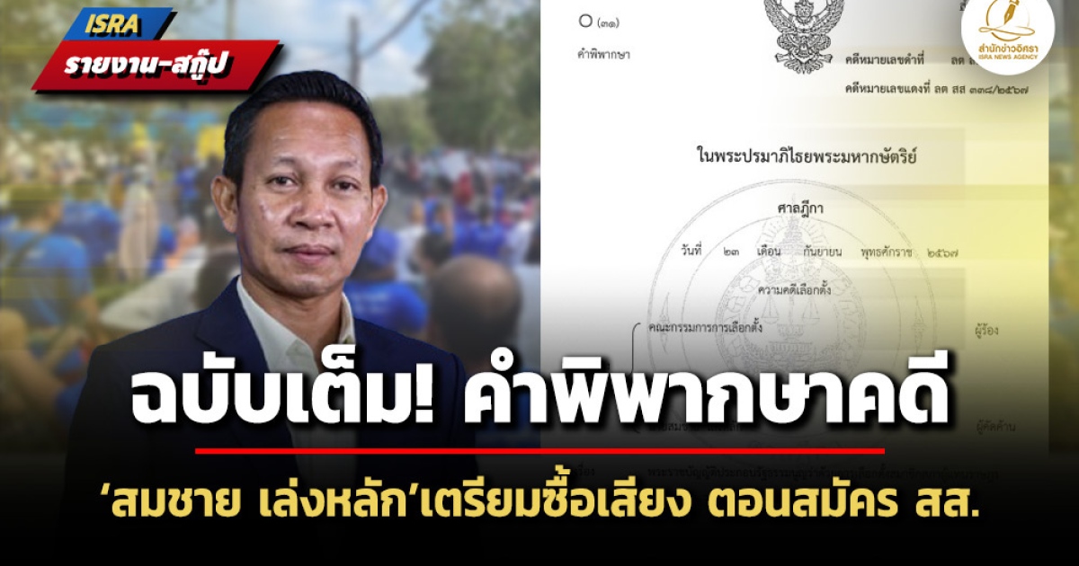 ละเอียดยิบ! คำพิพากษาฉบับเต็ม คดี‘สมชาย เล่งหลัก’ เตรียมแจกเงิน 1 แสนซื้อเสียง ตอนสมัคร สส. สงขลา พรรคภูมิใจไทย ศาลเพิกถอนสิทธิสมัครรับเลือกตั้ง 10 ปี ชนวนเหตุ กกต.ชงศาลรัฐธรรมนูญวินิจฉัย ขาดคุณสมบัติ สว.ปัจจุบัน พยานหลักฐาน โทรศัพท์ชี้ชัด เชื่อรู้เห็น ได้ประโยชน์จากหัวคะแนน