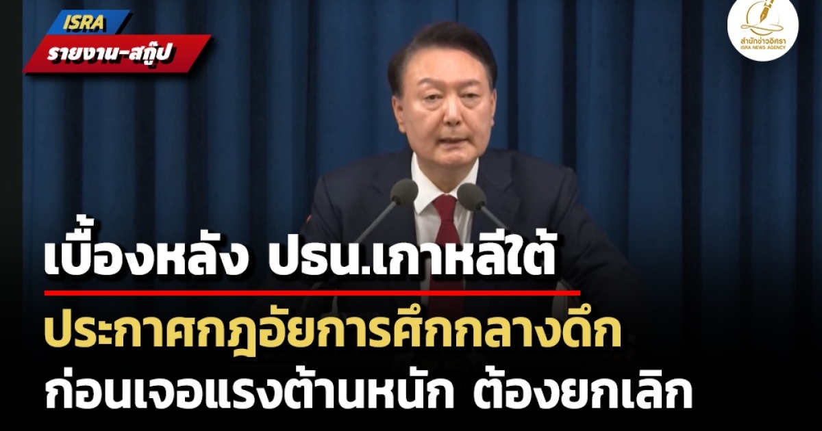 การตัดสินใจที่รุนแรงของประธานาธิบดียุน ซอก ยอล ถูกประกาศผ่านโทรทัศน์ในช่วงกลางดึกที่ผ่านมา โดยมีการกล่าวถึง “กองกำลังต่อต้านรัฐ” และภัยคุกคามจากเกาหลีเหนือ
