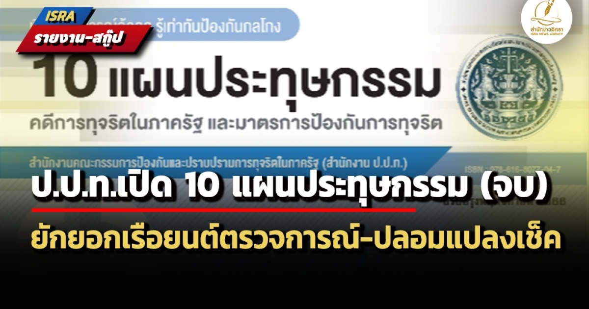 สำนักข่าวอิศรา (www.isranews.org) ได้นำเสนอ ‘10 แผนประทุษกรรม คดีการทุจริตในภาครัฐและมาตรการป้องกันการทุจริต’ ตอนแรก ไปแล้ว จำนวน 5 แผนประทุษกรรมการทุจริต