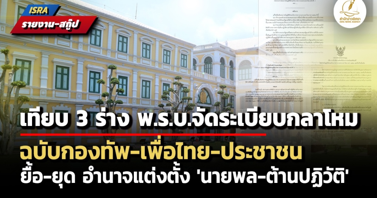 หมายเหตุ : สำนักข่าวอิศรา (www.isranews.org) ขอเสนอร่างพระราชบัญญัติ (พ.ร.บ.) จัดระเบียบราชการกระทรวงกลาโหม (ฉบับที่ ..) พ.ศ. .... จำนวน 3 ฉบับ ได้แก่ ฉบับของพรรคเพื่อไทย ฉบับของกระทรวงกลาโหม และฉบับของพรรคประชาชน ภายหลังจากมีการวิพากษ์วิจารณ์ในสังคมการเมืองและการทหารอย่างกว้างขวาง เพื่อเปรียบเทียบร่างกฎหมายทั้ง 3 ฉบับ