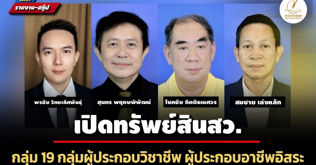 สำนักข่าวอิศรา (www.isranews.org) รายงานว่า เมื่อเร็ว ๆ นี้ สำนักงานคณะกรรมการการป้องกันและปราบการทุจริตแห่งชาติ (ป.ป.ช.) เปิดเผยบัญชีแสดงรายการทรัพย์สินและหนี้สินของสมาชิกวุฒิสภา (สว.) กลุ่มที่ 19 กลุ่มผู้ประกอบวิชาชีพ ผู้ประกอบอาชีพอิสระ กรณีเข้ารับตำแหน่งเมื่อวันที่ 23 ก.ค. 2567 โดยรายชื่อที่ได้รับการเปิดเผยรายการทรัพย์สินและหนี้สิน ได้แก่ 1.นายโชคชัย กิตติธเนศวร 2.นายสมชาย เล่งหลัก 3.นายพรชัย วิทยเลิศพันธุ์ 4.นายสุนทร พฤกษพิพัฒน์