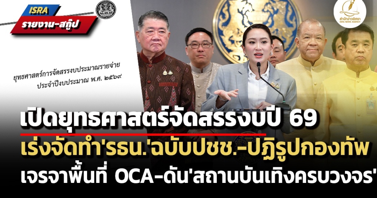 สำนักข่าวอิศรา (www.isranews.org) จึงขอนำเสนอสรุปรายละเอียดของยุทธศาสตร์การจัดสรรงบประมาณรายจ่ายประจำปีงบประมาณ พ.ศ.2569 ดังนี้