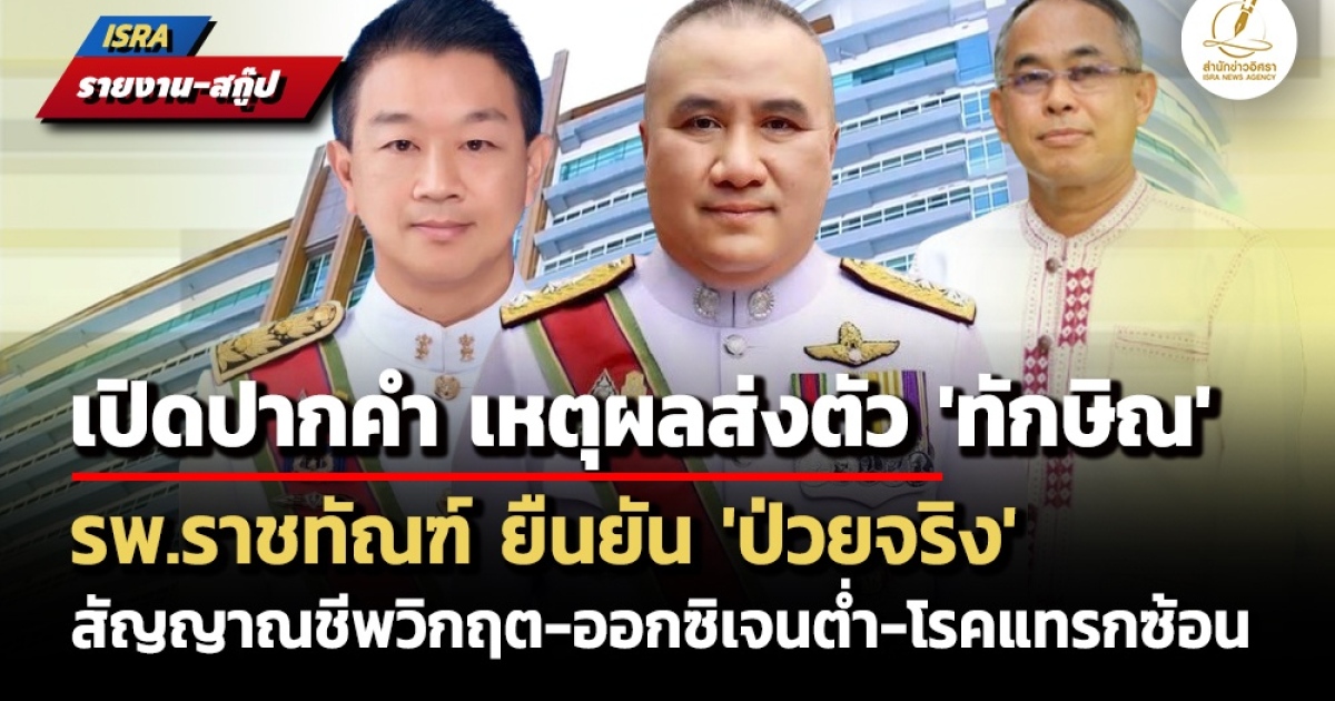@ ยืนยัน ‘ป่วยจริง’- เปิดเหตุผลส่งตัว ‘ทักษิณ’ ไป ‘รพ.ตำรวจ’