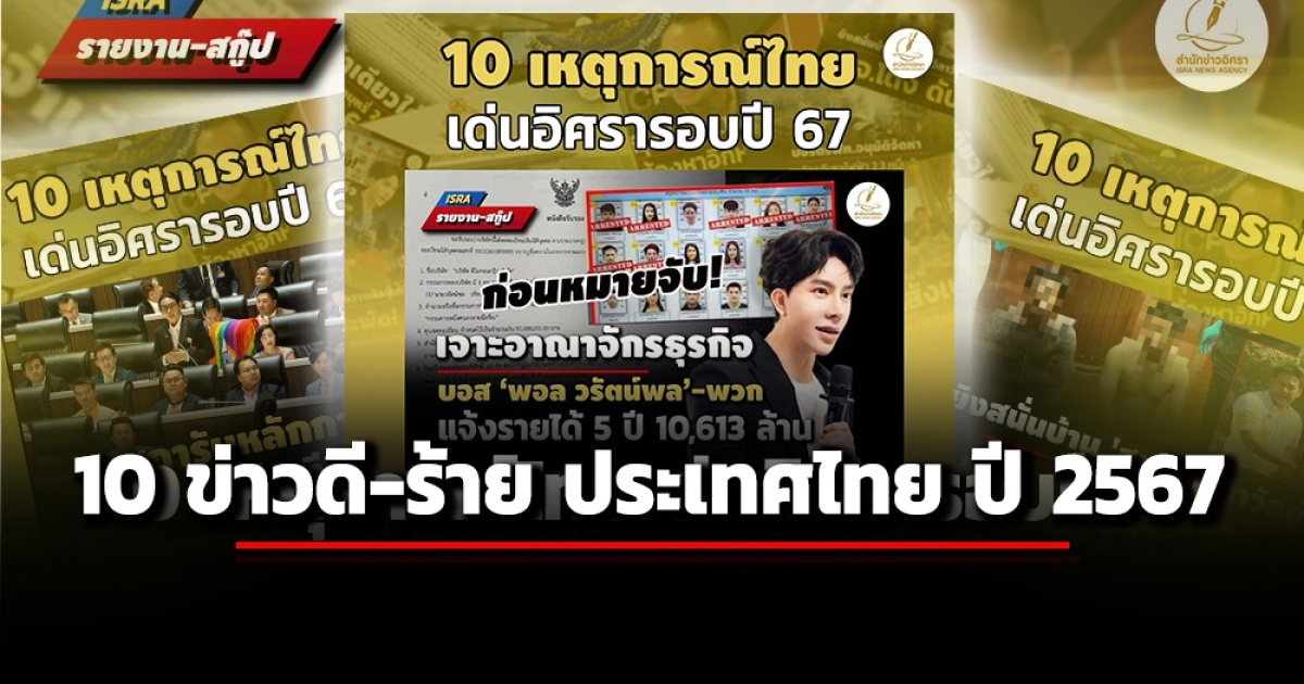 สำนักข่าวอิศรา (www.isranews.org) ขอประมวล 10 เหตุการณ์สำคัญของประเทศไทยในรอบปี 2567 เพื่อส่งท้ายปีเก่า-ต้อนรับศักราชใหม่ ที่จะเกิดขึ้นใน พ.ศ.2568