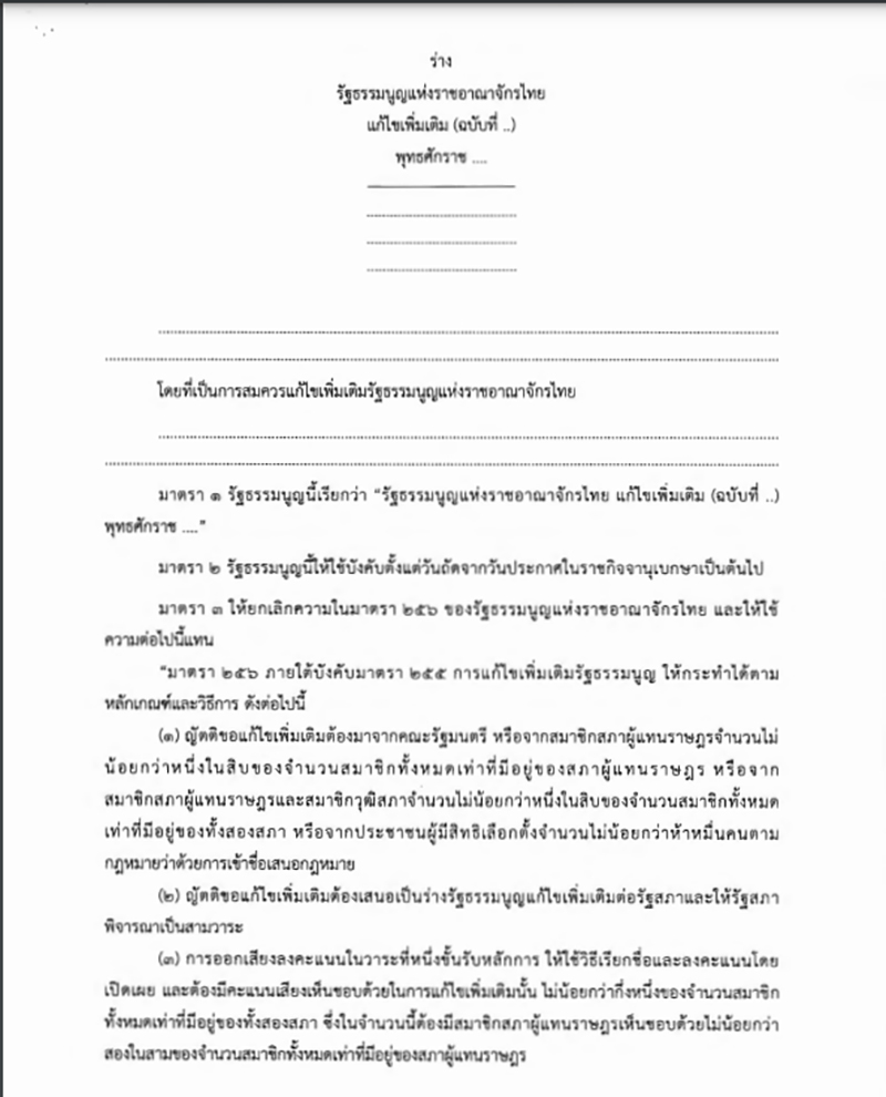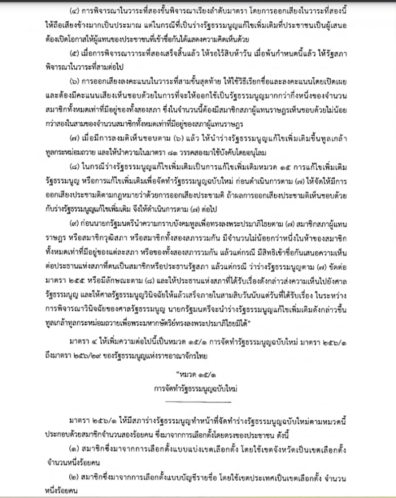 แก้ไขเพิ่มเติมมาตรา 256 ของรัฐธรรมนูญแห่งราชอาณาจักรไทย และเพิ่มเติมหมวด 15/1 การจัดทำรัฐธรรมนูญฉบับใหม่