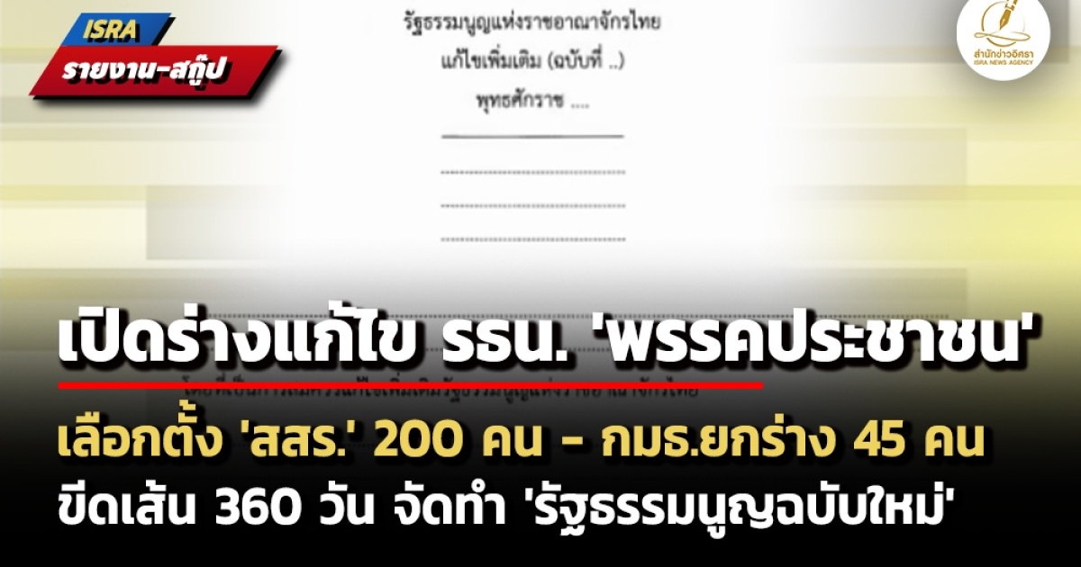 สำนักข่าวอิศรา (www.isranews.org) รายงานว่า สำหรับร่างรัฐธรรมนูญแห่งราชอาณาจักรไทย แก้ไขเพิ่มเติม (ฉบับที่ ..) พุทธศักราช .... ฉบับดังกล่าว มีทั้งหมด 5 มาตรา โดยมีหลักการและเหตุผล ดังนี้
