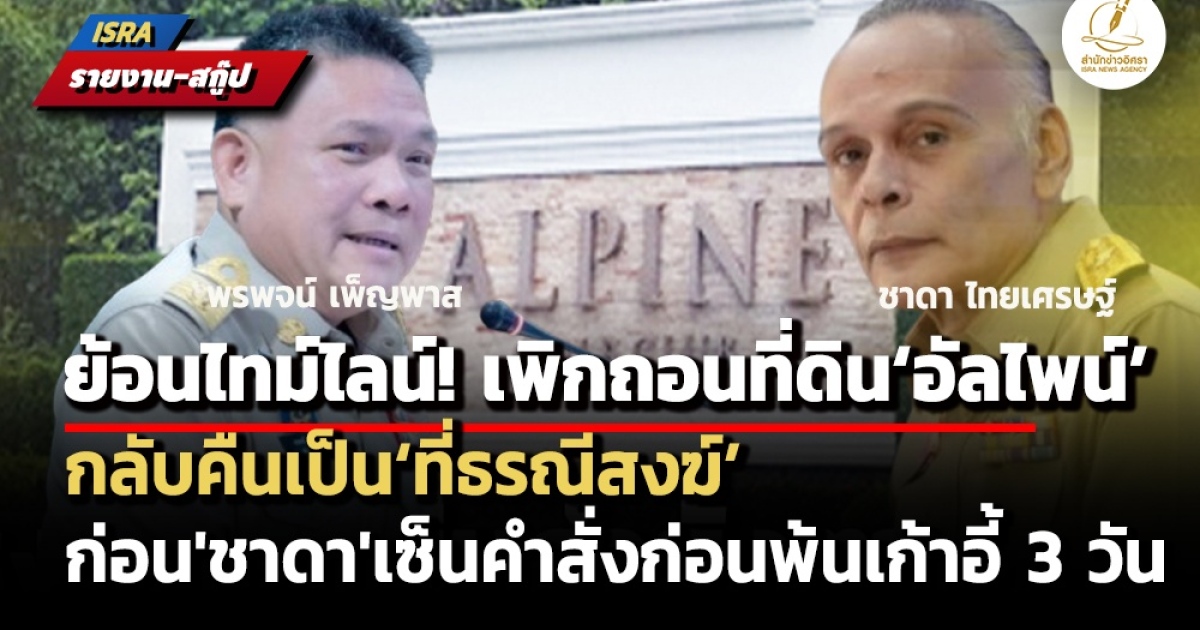 ลงนามก่อนพ้นรมช.3 วัน! 'ชาดา' เซ็นทิ้งทวนเพิกถอนกรรมสิทธิ์ที่ดินอัลไพน์แล้ว